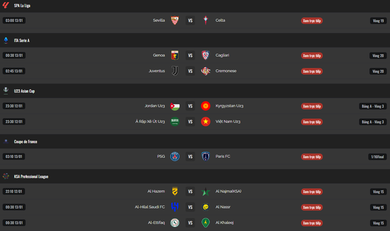Điểm khiến lịch bóng đá trên Mitom Live trở nên thực sự hữu ích là việc nó không đứng một mình. Lịch luôn được kết nối trực tiếp với kết quả và bảng xếp hạng, tạo ra một trải nghiệm theo dõi liền mạch cho người xem.