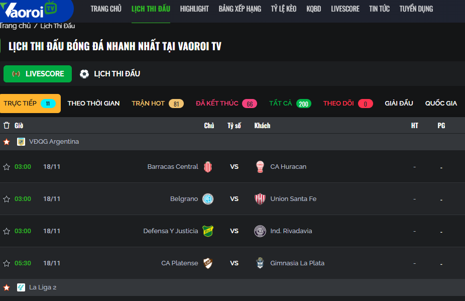 Từ trang chủ VaoroiTV, người dùng chỉ cần nhấp vào chuyên mục “Lịch Thi Đấu” trên thanh menu chính. Đây là nơi tổng hợp tất cả các thông tin về các trận đấu sắp diễn ra.