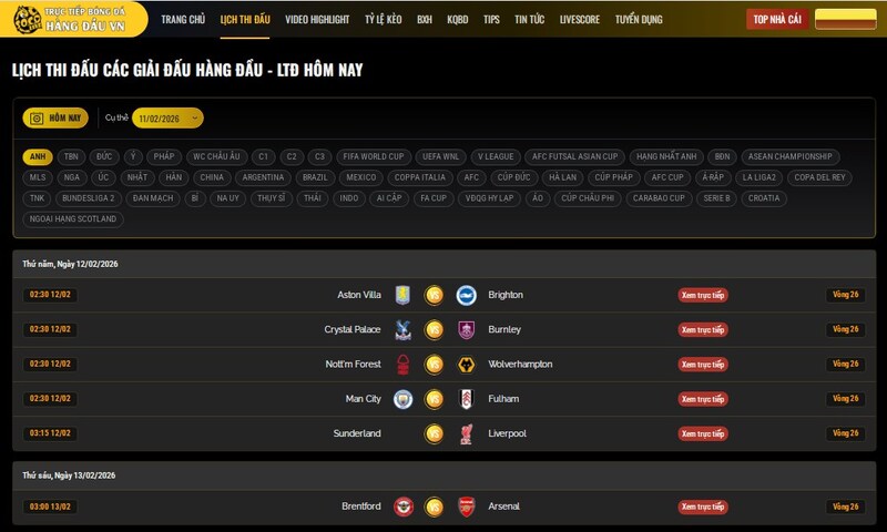 Điều mình ấn tượng đầu tiên là giao diện khá dễ dùng. Vào trang là thấy ngay các trận đang diễn ra, những trận sắp đá và đặc biệt là mục lịch thi đấu được sắp xếp rất gọn. Không cần phải lướt quá nhiều, anh em đã có thể tìm đúng trận mình muốn chỉ sau vài thao tác.