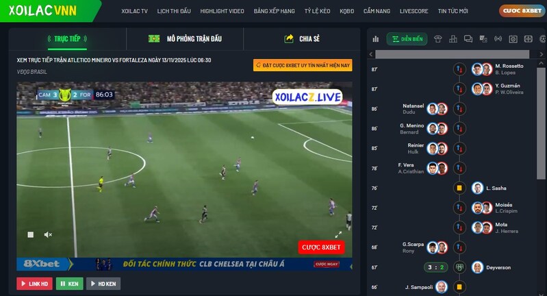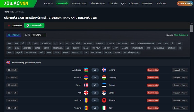 Tính năng Livescore của Xoilac Vnn cập nhật tỷ số, thẻ phạt, phạt góc và bàn thắng theo từng giây. Với anh em thích cá cược hay chơi kèo rung, đây thực sự là công cụ vàng để không bỏ lỡ nhịp độ trận đấu.